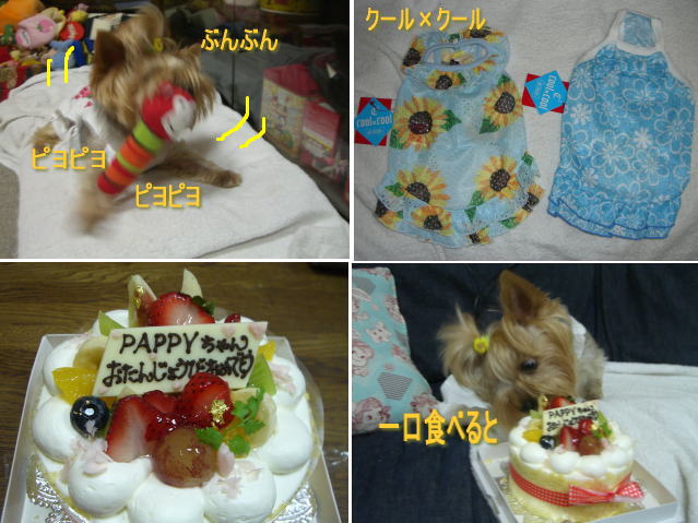 今日はパッちゃん7歳の誕生日でした。 昨日、愛犬倶楽部わんさんで、http://aiken-wan.com/クール×クールの ウェアを私からプレゼントで2着買ってきました。